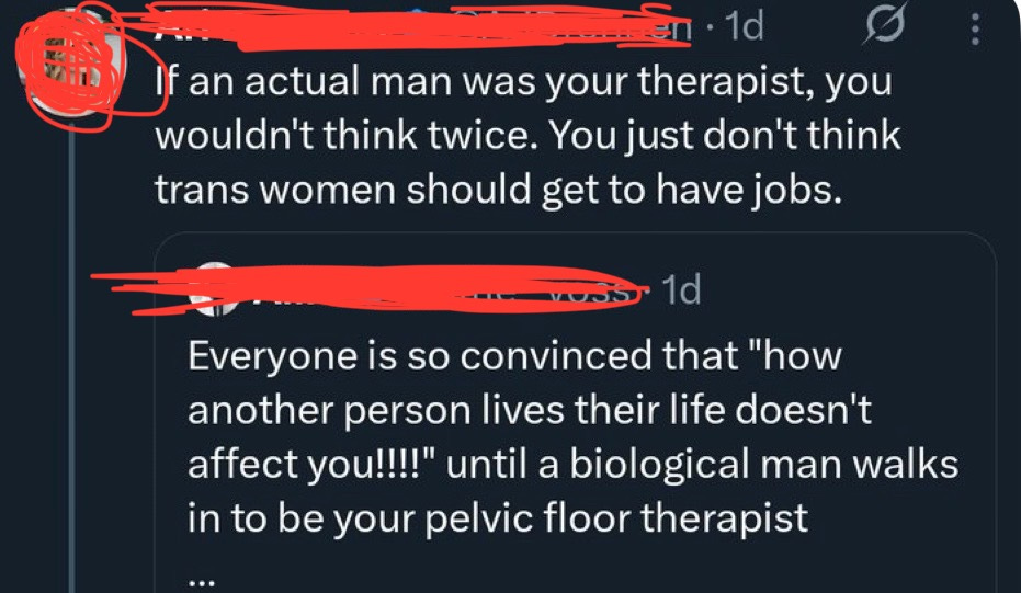 There will be women who are happy to be seen by a male pelvic health physio, and we’re told this person has a passion for working with those who have gender issues (which is great as that population has disproportionate rates of pelvic floor dysfunction) - but an employer who fails in their duty of care to staff by ensuring patients expecting single sex care are not on the list of a trans-identified man could land up managing an employee’s distress, if not their grievance.