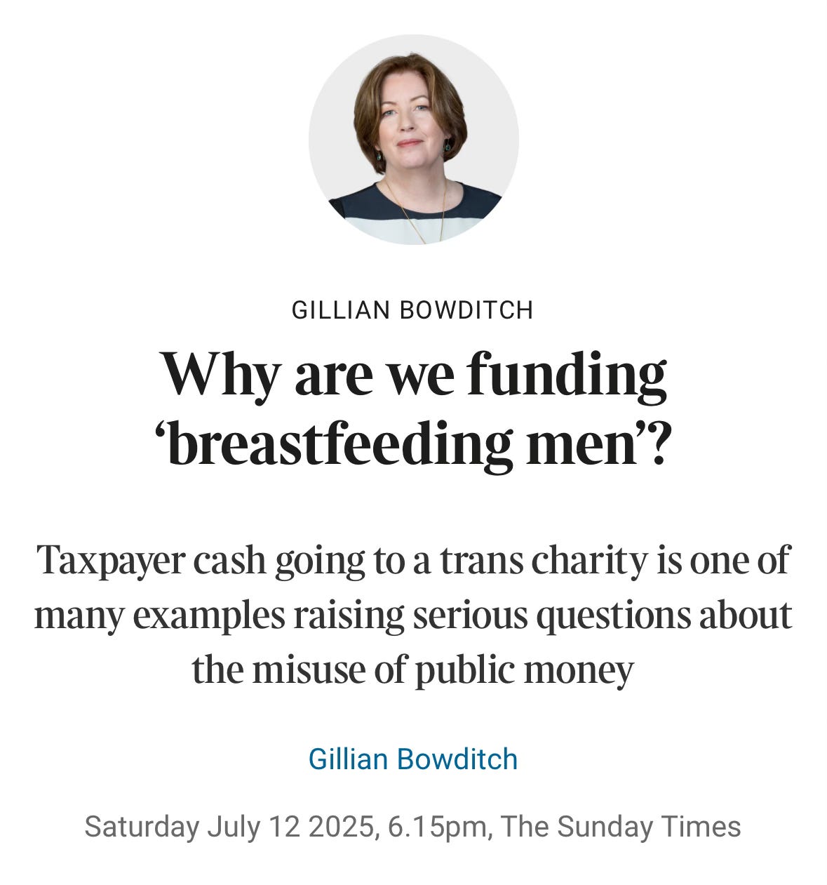 Perhaps Scottish Trans could consider allocating some of their £2.5 million worth of funding on the evidenced gaps in consent, poor clinical support, and urgent need for change in guidelines and maternity care for detransitioned mothers who cannot breastfeed.
